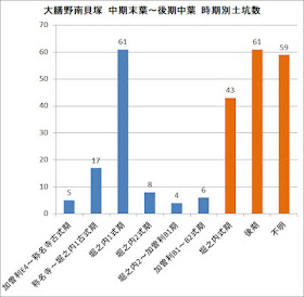 詳細な時期が読み取れる土器が出土する土坑は38基中6基であり、その割合は約16%にすぎません。その割合の少なさは後期全体の割合約38%の半分以下です。